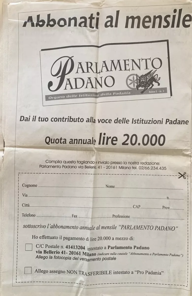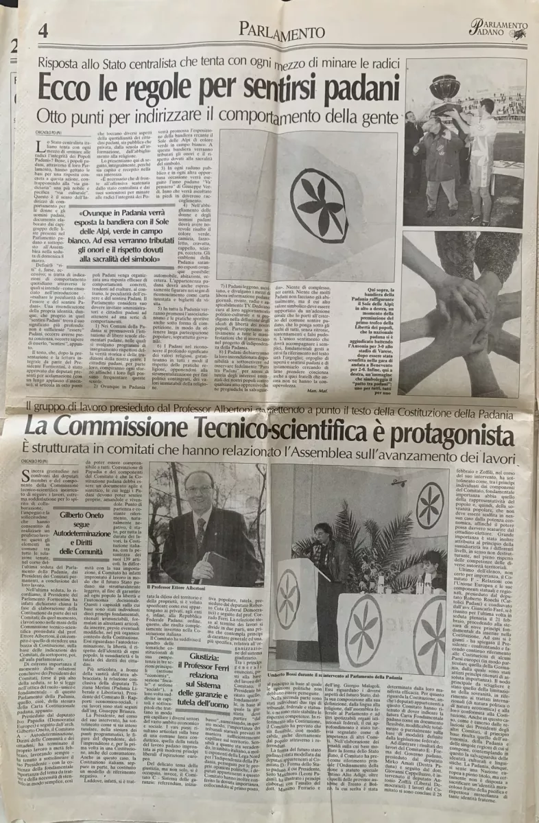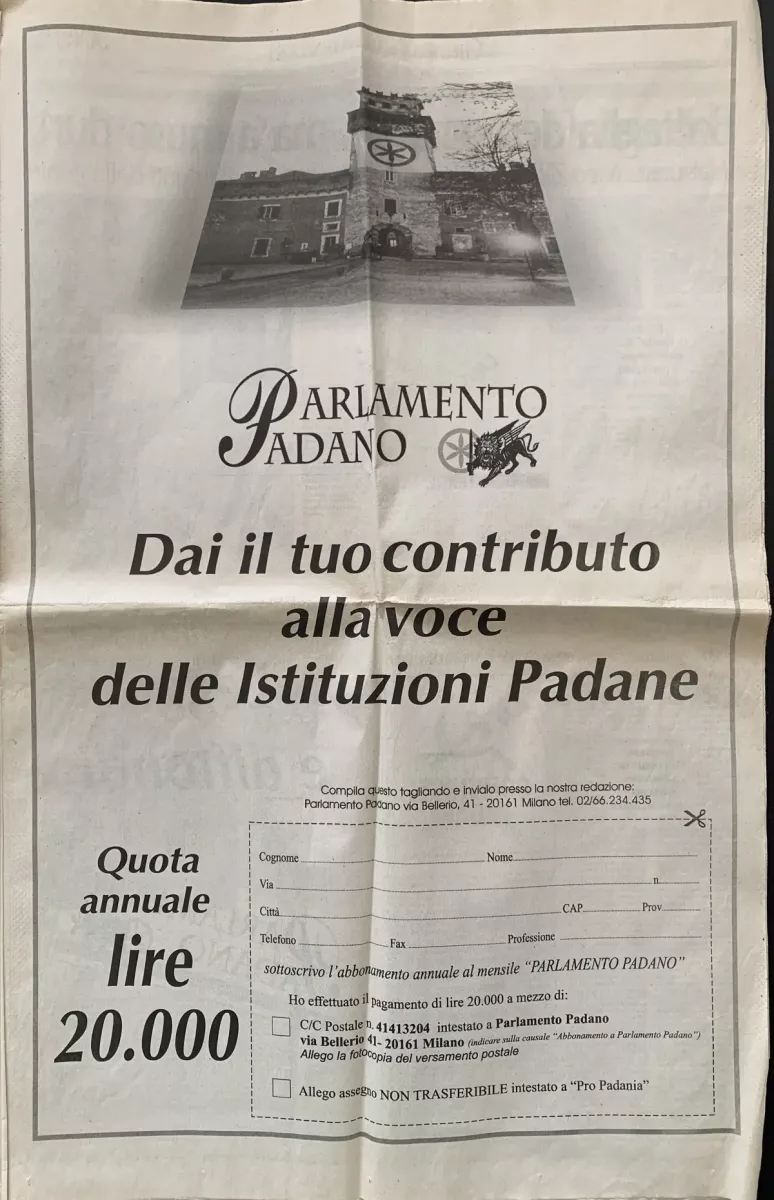 Cuoreverde ha anche ritrovato le copie della pubblicazione (1998) Parlamento Padano, che proponiamo come prezioso documento storico.