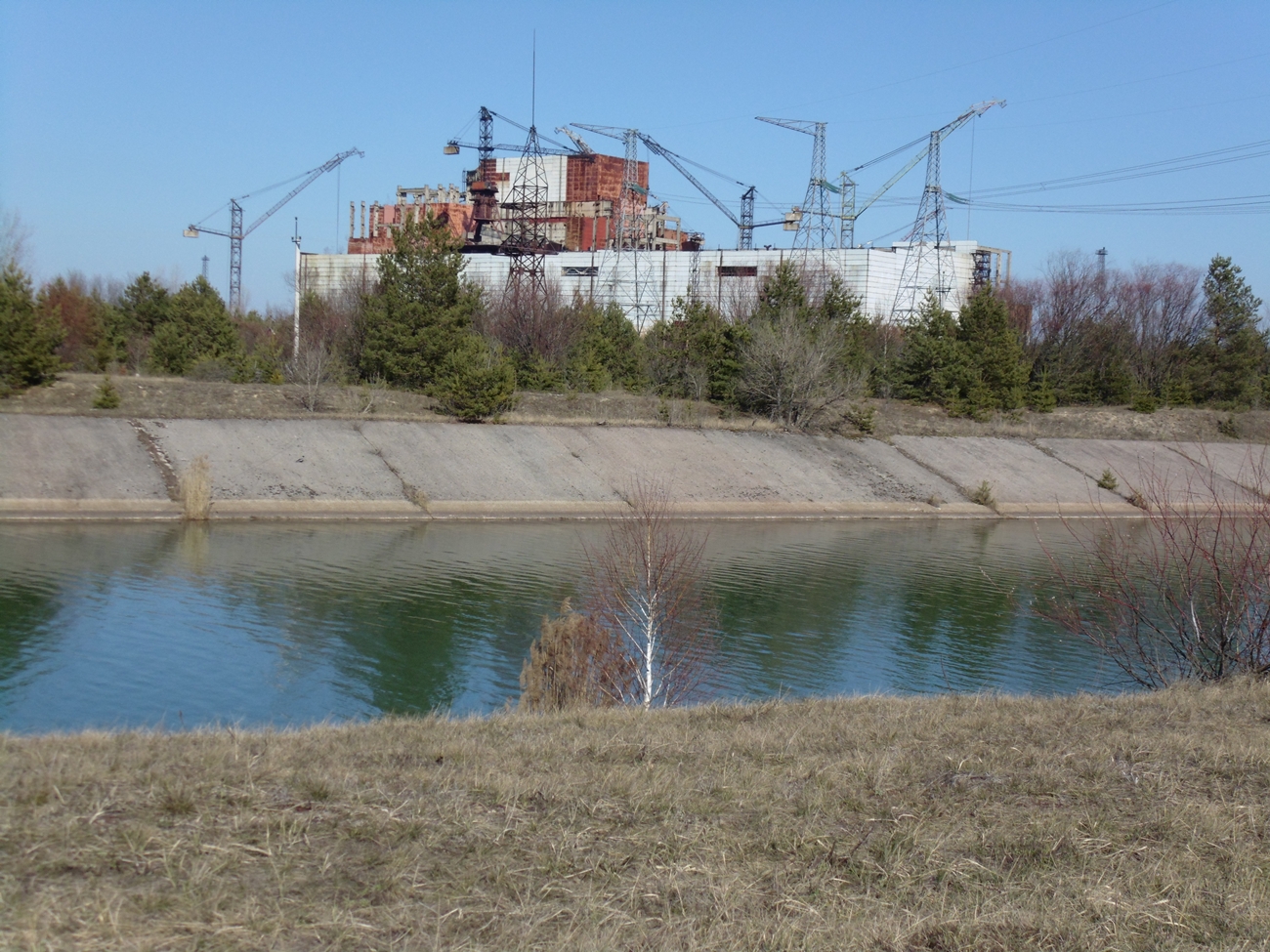 “Alla vostra destra vedete il sito dove si stavano costruendo il quinto e il sesto reattore. I lavori furono interrotti dopo l’esplosione del reattore numero quattro”. Li si vede svettare chiaramente oltre le acque cerulee di un canale artificiale, sovrastati dai sinistri pinnacoli delle gru che sorvegliano come gelide sentinelle un orribile mausoleo di cemento.
