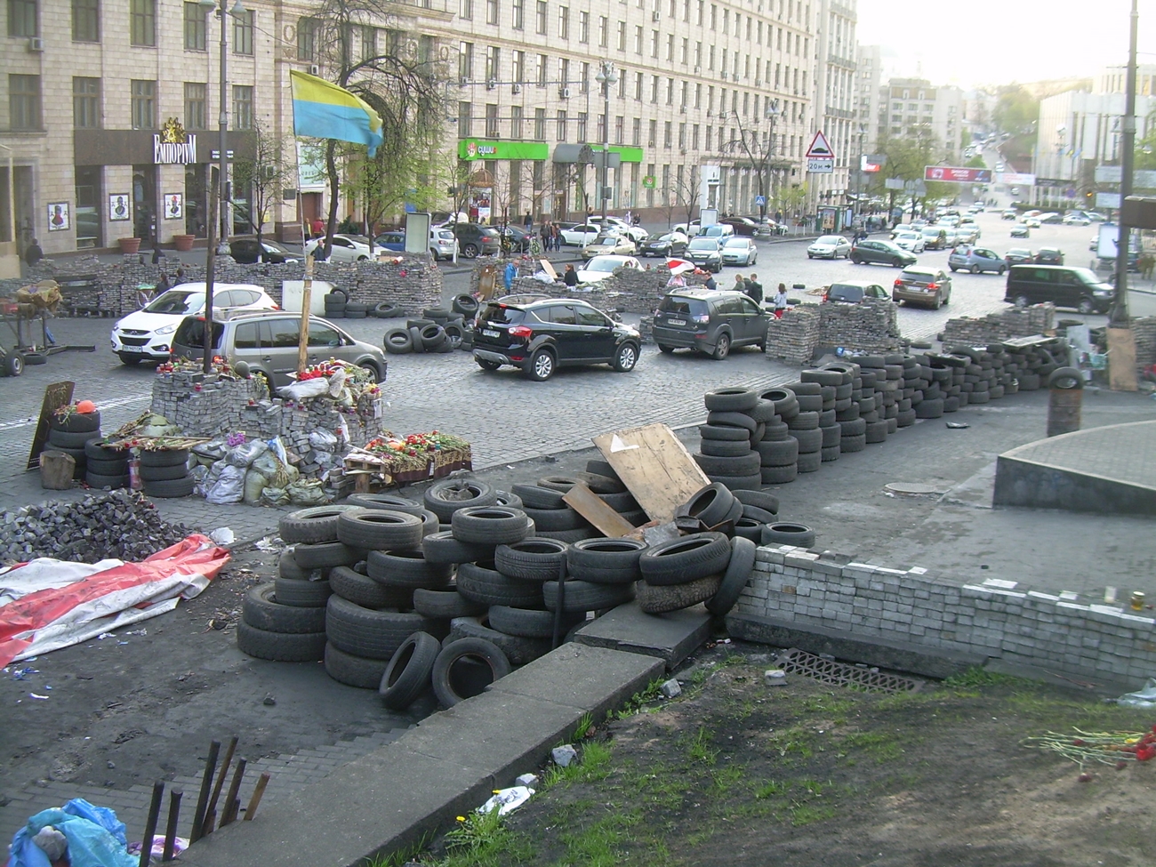 Al centro di Maidan, altre centinaia di lumini sono stati depositati alla base della colonna dell’Indipendenza. Sul lato opposto della strada, ora lasciato libero per il passaggio delle auto, era installato un grande palco sul quale si alternavano improbabili oratori, cantanti e politici che prendevano la parola aprendo i loro discorsi all’insegna di “Cristo è risorto, l’Ucraina è risorta”. Era il periodo della Pasqua ortodossa e a vegliare su di loro c’erano nelle retrovie le tonache nere di popi barbuti che già segnavano il territorio sognando un paese sulla “via della redenzione”.